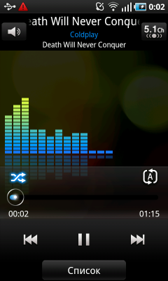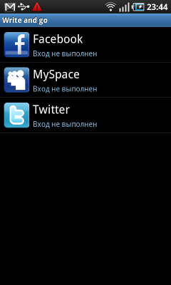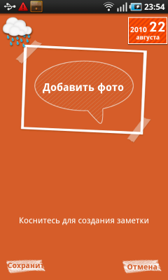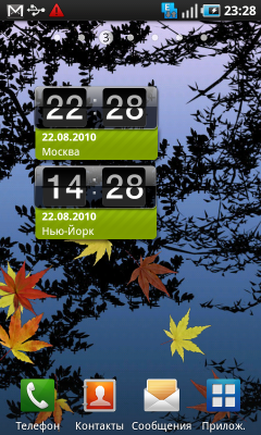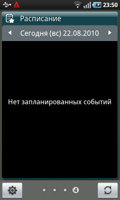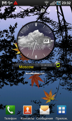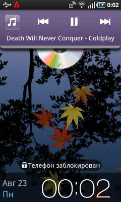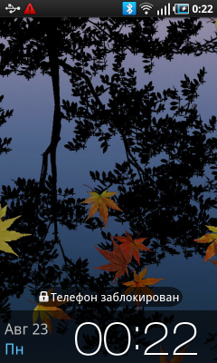 Владелец коммуникатора после включения питания попадает на экран разблокирования устройства. Чтобы выполнить эту нехитрую операцию, достаточно сдвинуть «экран» в любую сторону. Какие-либо кнопки или ползунки отсутствуют, двигать нужно весь экран целиком — очень удобно. В заблокированном состоянии на дисплее коммуникатора отображается информация из верхней панели системы: статусы беспроводных интерфейсов и аккумулятора, значки поступивших сообщений и данные о USB-подключении. Кроме того, на этом экране размещены крупные часы с календарем, туда же выводится информация встроенного аудиоплеера или радиоприемника.