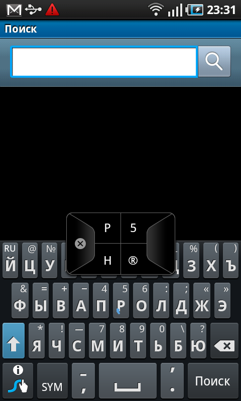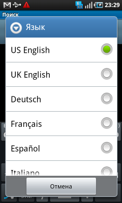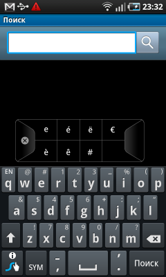 Ввод текста обычным образом также прост и быстр, сенсорный экран точно определяет местоположение пальца, клавиши крупные и по ним легко попасть с первого раза, на каждое прикосновение к клавишам коммуникатор отвечает легкой вибрацией. Ложкой дегтя в огромной бочке с медом оказался способ переключения раскладки. По неизвестной причине, вместо одной удобной клавиши быстрой смены языка ввода разработчики поместили на экран кнопку, которая выводит полный список всех поддерживаемых языков. Чтобы сменить английский язык на русский, приходится долго мотать пальцем этот обширный список. Впрочем, если нужно ввести на другом языке лишь одну букву, можно задержать нажатие буквенной клавиши — появится небольшое окно с символами, которые назначены на нее в различных раскладках — в целом, также не очень удобно.
