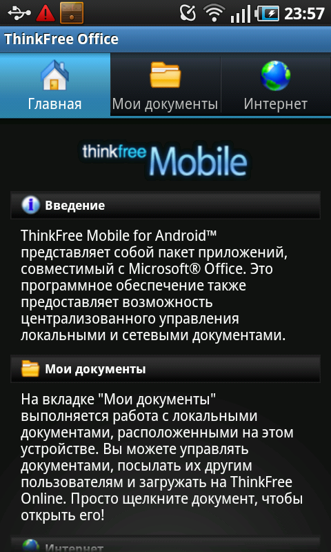 Любителям вести дневники или просто записывать мысли на ходу помогут программы Mini Diary, Write and Go, Голосовой набор и Диктофон. Для более тщательной работы с текстом, таблицами и презентациями в Galaxy S установлен набор приложений ThinkFree Office. Входящие в него программы умеют работать с документами форматов Microsoft Office и PDF.