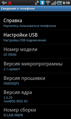 В Samsung Galaxy S установлена операционная система Android 2.1 Eclair, в сентябре должно выйти обновление прошивки с Android 2.2 Froyo.