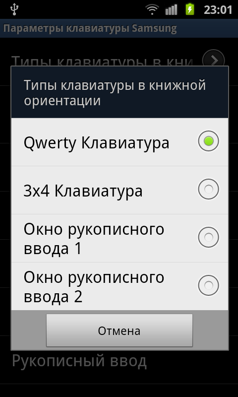 Разработчики Samsung не поскупились и установили целых четыре типа клавиатуры. Первый из них — обычная QWERTY-клавиатура, удобная и неудобная в равной степени. Второй тип повторяет своим видом телефонный аналог, с крупными клавишами и необходимостью множество раз нажимать их. Третий тип — подзабытое с широким распространением бесперьевых мобильных компьютеров распознавание рукописного ввода. Четвертый — клавиатура Swype, известная среди мобильной общественности оригинальным методом ввода и поставленным в одно время рекордом ввода текстовой информации на устройстве с сенсорным экраном. Какой из методов ввода текста самый удобный — пусть каждый решает сам, субъективное мнение автора заключается в превосходстве обычной клавиатуры в альбомном режиме работы коммуникатора.