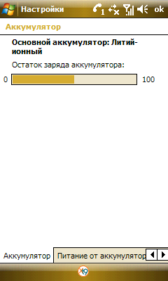 Заряжается аккумулятор двумя способами: от зарядного устройства и при подключении коммуникатора к USB порту компьютера. В первом случае процесс занимает 2,5 часа, во втором 3,5.