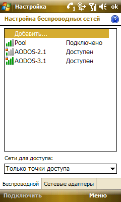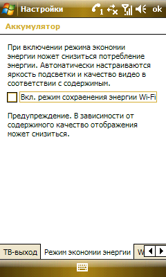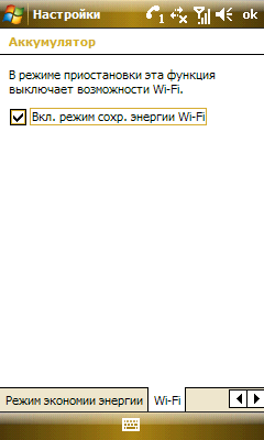 Работа коммуникатора в беспроводных сетях Wi-Fi не вызвала никаких нареканий. Оно и понятно, обеспечивают функционирование модуля проверенные временем средства операционной системы. Дополнительно пользователь имеет возможность установить режим потребления энергии и время автоматического прекращения работы интерфейса.