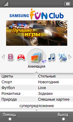 Дополняют список: замена обычному альбому Windows Mobile Мои файлы, Медиа проигрыватель, редактор видео, программа просмотра подкастов, проигрыватель потокового видео, клиент сервисов Google, программа для доступа в каталог приложений Samsung Fun Club, приложение для просмотра фотографий в режиме слайд-шоу, лаконичная программа Фоторамка, а так же программа-клиент Цифровой-дом.