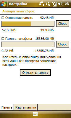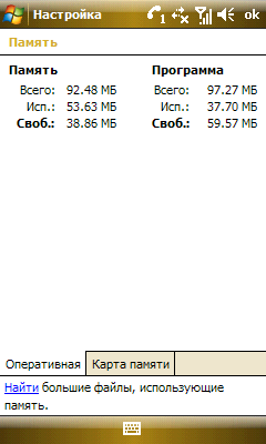 Странно, но факт: Samsung в WiTu предпочла чип Marvell PXA 312 собственным разработкам. Процессор работает с частотой 624 МГц максимум доступного в продаже на данный момент, хотя анонсированы модели и с гигагерцовыми чипами. Инженеры Samsung не поскупились и установили 128 МБ оперативной памяти (оно и понятно, Samsung один из ведущих производителей в мире), 256 флеш-памяти для файловой системы и 16 ГБ для прочих пользовательских нужд (более дешевая модель коммуникатора оснащена 8 ГБ памяти). К слову, коммуникатор может прикинуться USB флэш-накопителем, что очень полезно при отсутствии ActiveSync на большом компьютере и желании скопировать во встроенную память нечто большое по объему.
