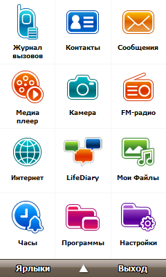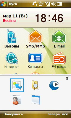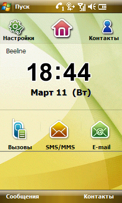Вторая замена для экрана Today представляет собой таблицу крупных иконок, отвечающих за наиболее используемые (с точки зрения разработчиков) операции с мобильным компьютером. В верхней части окна находятся часы и календарь. По большей части оболочка повторяет меню приложений и операций коммуникатора, которое вызывается отдельной аппаратной клавишей на правой грани корпуса устройства. Третья замена Today также содержит значки быстрого запуска приложений, но в меньшем количестве и расположенные на нескольких закладках окна.