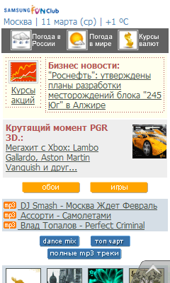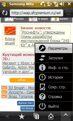 Без замены не мог остаться и встроенный в WinMobile браузер Internet Explorer. Хоть оригинал и остался в системе, работа в сети возложена целиком на Opera Mobile. Причем в Samsung WiTu установлена новая версия браузера Opera Mobile 9.5, кардинально отличающаяся от предыдущих версий и далеко ушедшая в плане возможностей от стандартного Internet Explorer. Похоже, что в качестве образца разработчики Opera Mobile взяли браузер Safari, используемый в Apple iPhone. Они даже похожи внешне. Максимально облегчено управление программой без использования стилуса, поддерживается плавная прокрутка и изменение масштаба открытых страниц при помощи пальца, размещение открытых страниц на нескольких вкладках. Браузер работает быстро и без сбоев, даже без скидки на beta-версию программы. На сайте Opera Software коммуникатор Samsung i900 WiTu указан как одно из устройств, на которых проводилось тщательное тестирование работы приложения.