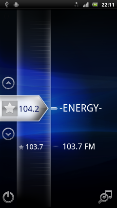 Интерфейс программы управления радиоприемником очень интересен и необычен. Весь спектр радиочастот представлен в виде одной вертикальной бесконечной ленты. В центре экрана находится ползунок, относительно которого можно прокручивать ленту. Соответственно при её движении меняется частота настройки приемника. При обнаружении станции её можно одним касанием добавить в избранное. Переключаться между запомненными станциями легко при помощи появляющихся сбоку от ленты двух иконок. Приемник определяет сигнал RDS, он отображается в правой области экрана программы. Вообще же качество приема сигнала хорошее, громкость регулируется как программно, так и аппаратно, звук можно выводить на внешний динамик, а программа способна автоматически искать достаточно мощные станции и запоминать их. Что тут скажешь, программа настолько удобная, что невольно закрадывается предположение, не её ли незавершенная разработка обусловила отсутствие радиоприемника в Х10?