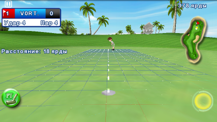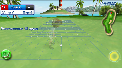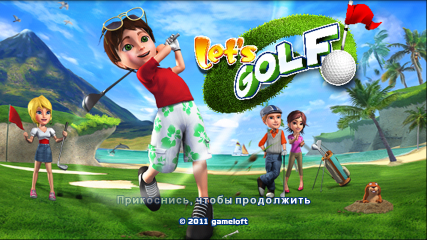 Среди списка установленных программ нашлась одна игра. Это красочный и забавный симулятор гольфа Let’s Golf. Для запуска игры требуется дополнительно загрузить около 200 МБ данных, которые будут храниться на карте памяти.