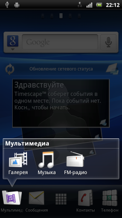 Однако все это было в прошлом. С выходом Xperia Arc оболочка UX превратилась в то, чем и должна была быть — всего лишь темой для экстерьера Android. Приложения Timescape и Mediascape претерпели значительные изменения. Timescape трансформировался в обычный виджет, состоящий из ленты событий. При касании отдельного элемента ленты открывается соответствующее приложение, например программа управления сообщениями. В ленте по-прежнему могут отображаться сообщения из Twitter и Facebook, а поддержка отечественных социальных сетей отсутствует.