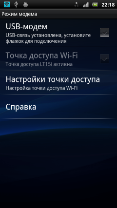 Операционная система Android 2.3 имеет возможность делиться интернет-трафиком через модуль Wi-Fi. Поддержка этой технологии имеется в Xperia Arc, коммуникатор может выступать в роли точки доступа беспроводной сети. Кроме того, мобильный компьютер может использоваться в качестве модема при подключении по USB.