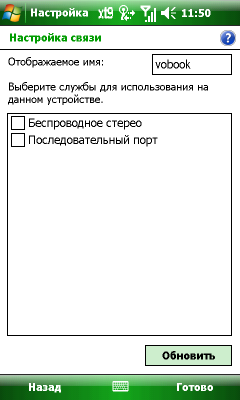 Обмен данными с помощью модуля Bluetooth управляется и организуется при участии встроенного в операционную систему стека Microsoft. Он не отличается дружественным интерфейсом, но обеспечивает всю необходимую функциональность, как то: обмен данными, модемный доступ, эмуляция последовательного порта и подключение беспроводной стереогарнитуры.