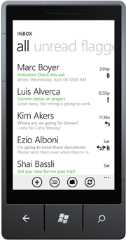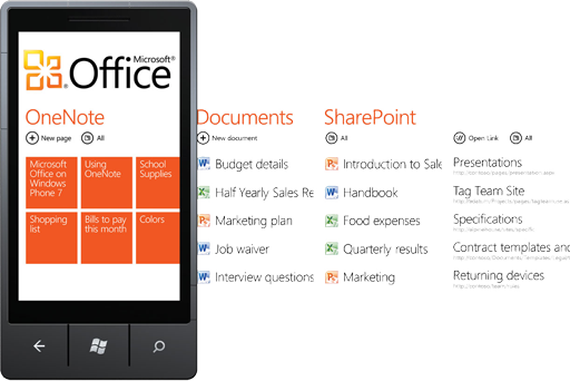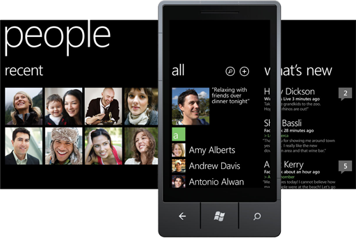 Разработчики компании провели большую работу по интегрированию различных инструментов общения и обмена информацией в операционную систему. Если старая Windows Mobile все-таки более соответствовала принципу разделения ОС и программного обеспечения для обмена информацией, то новая Windows Phone временами напоминает большой удобный мобильный Outlook. В ходе презентации ОС был показан мгновенный обмен контактной информацией, сообщениями, почтой, заметками с сервером Exchange. Неизвестно, насколько система способна взаимодействовать со сторонними серверами на таком же уровне, но в корпоративной сети Microsoft владелец Windows Phone будет чувствовать себя как рыба в воде. Были интегрированы в систему и социальные сети, в частности, Facebook. Впрочем, этим ныне никого не удивишь. В целом, с точки зрения удобства обмена информацией, Windows Phone значительно превосходит свою предшественницу.