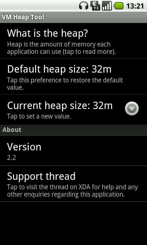 Настройки производительности устройства содержат пункты, непосредственно влияющие на работу системы и процессора, так что менять их нужно со знанием дела и с уверенностью в правильности своих действий. Здесь можно задать пределы рабочей частоты процессора, установить размер кэша виртуальной машины, включить или отключить JIT и выставить режим работы графической подсистемы вместе с различными эффектами и сглаживанием.