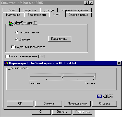 оттенок, и чернила фирмы Hewlett Packard не обладают устойчивостью к влажному