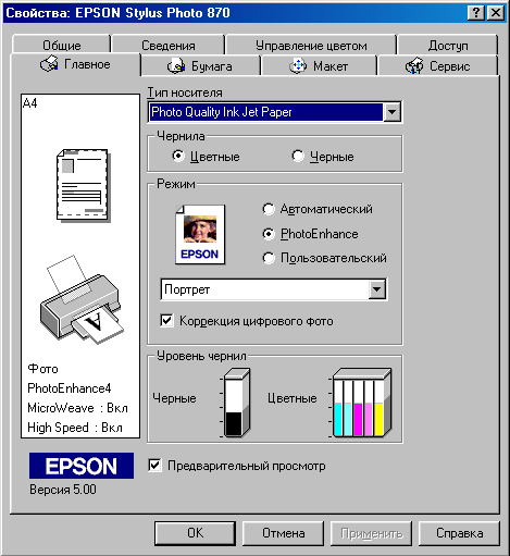 Особо хочется отметить возможность предварительного просмотра перед печатью, что позволяет как скорректировать ошибки, связанные с размерами, превышающими область печати, так и оценить цветовую коррекцию, внесенную драйвером.