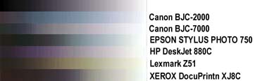 Оценивая цветовое смещение серой шкалы отмечу, что Canon BJC 2000 имеет небольшой голубой сдвиг,