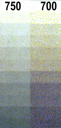 Когда появился первый принтер марки Photo, казалось, что ничего лучшего из струйной технологии уже выжать нельзя Появление принтера Photo 700 в какой-то степени укрепило покупателей в этой мысли, поскольку никакого принципиального улучшения качества не наблюдалось, а было только уменьшение цены. Однако принтер Photo 750, который использует новые чернила и, в дополнение к 6-красочной технологии, изменяет и размер капли, действительно обозначает новую эру в эпохе струйной печати. Воспроизведение светлых мест изображения столь качественно, что сканеры с разрешением 1200х600 dpi без специальных ухищрений уже не различают отдельных точек. Для того, чтобы выявить на сканированном изображении отдельные точки, мне пришлось существенно увеличить плотность отсканированного изображения.