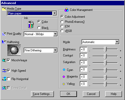 Драйвер принтера, к сожалению, англоязычный, имеет очень богатые установки