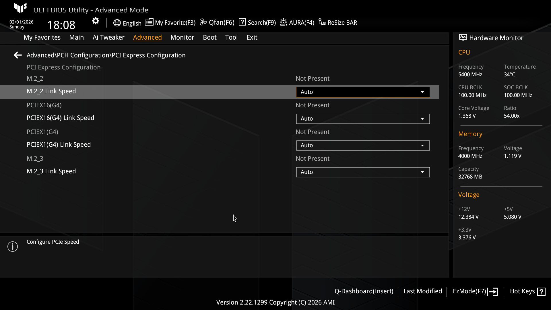 - Переключатель: или слот PCIe x1 получает 1 линию PCIe 4.0) + слот PCIe x16_2 получает (2 линии PCIe 4.0); или слот PCIe x1 отключен + слот PCIe x16_2 получает (4 линии PCIe 4.0) – всего максимально 4 линии PCIe 4.0;
