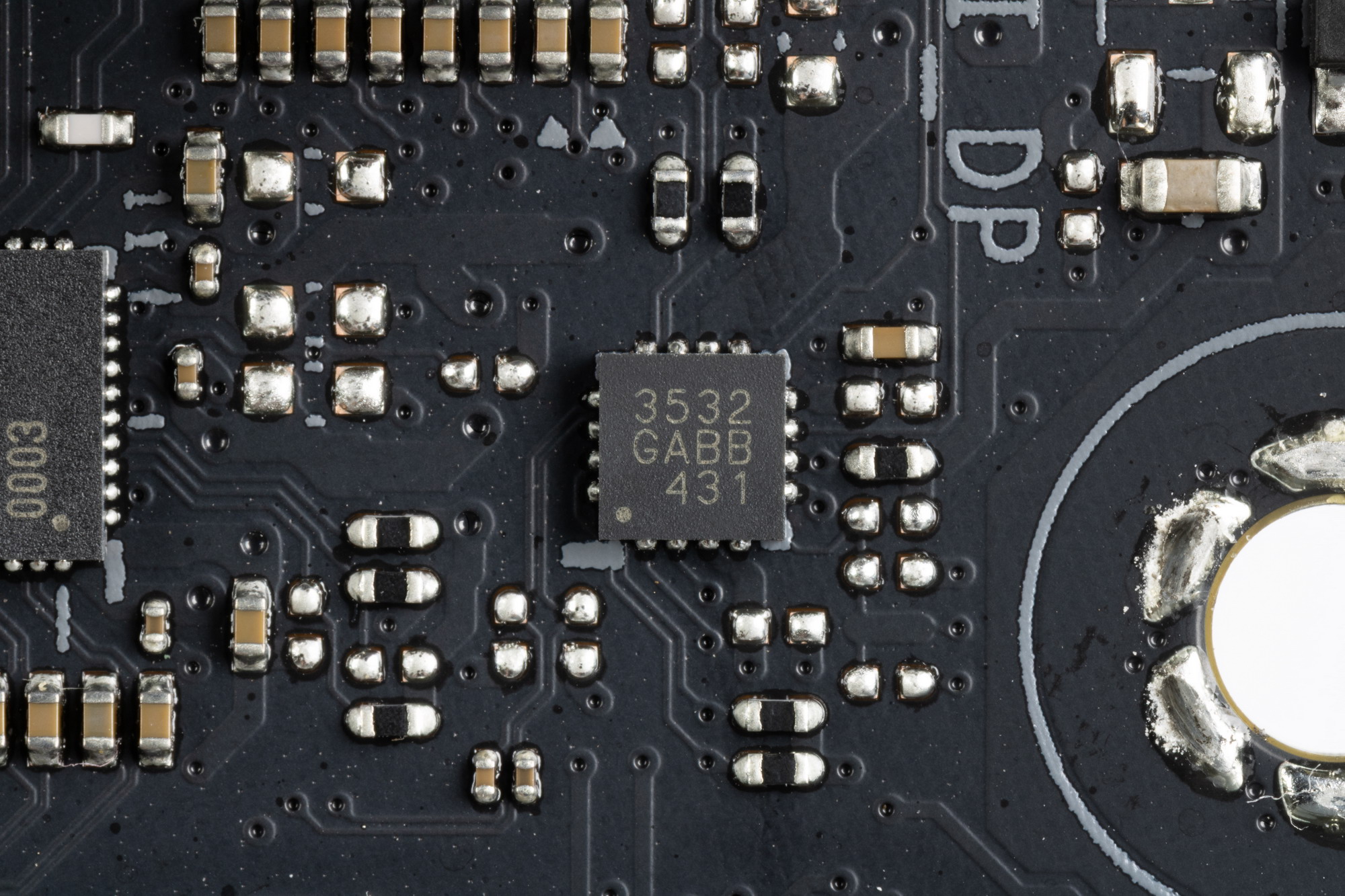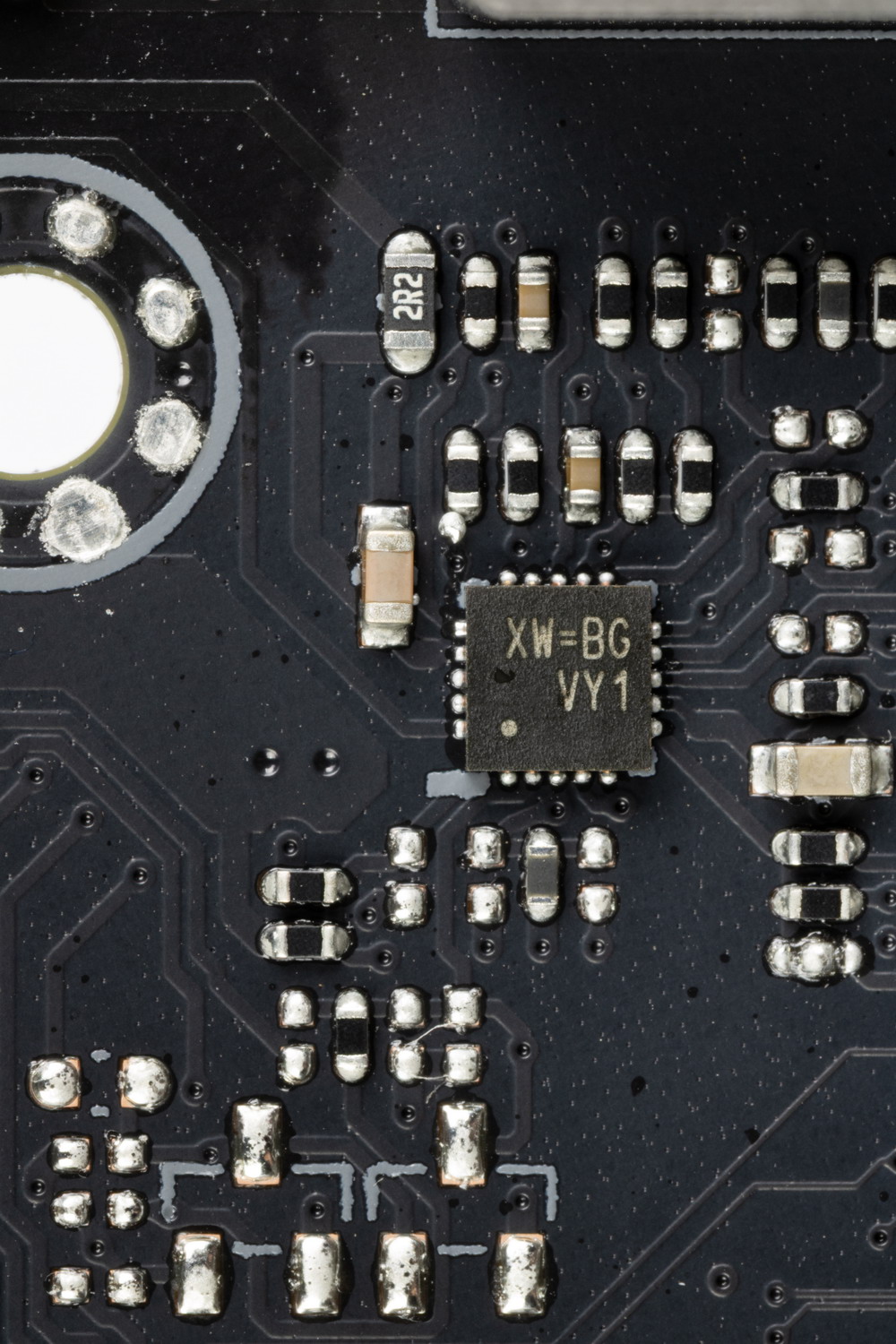Каждый канал фазы блоков VCore, VNNAON, VCCSA и iGPU имеет суперферритовый дроссель и AOZ53071QI DrMOS от Alpha&Omega Semi на 80 А.