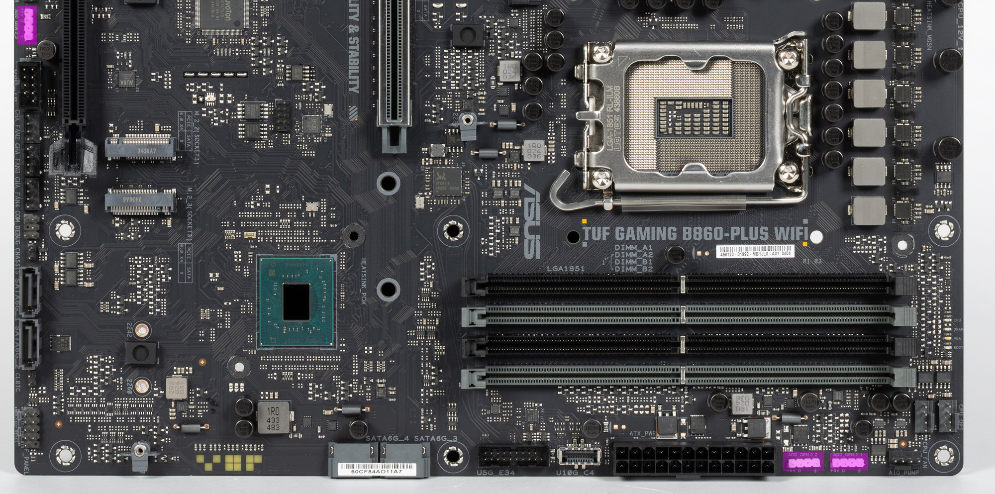 Asus TUF Gaming B860-Plus WiFi — недорогая материнская плата среднего уровня для платформы Intel LGA1851. На момент публикации обзора ее розничная стоимость начиналась от 18 тысяч рублей.