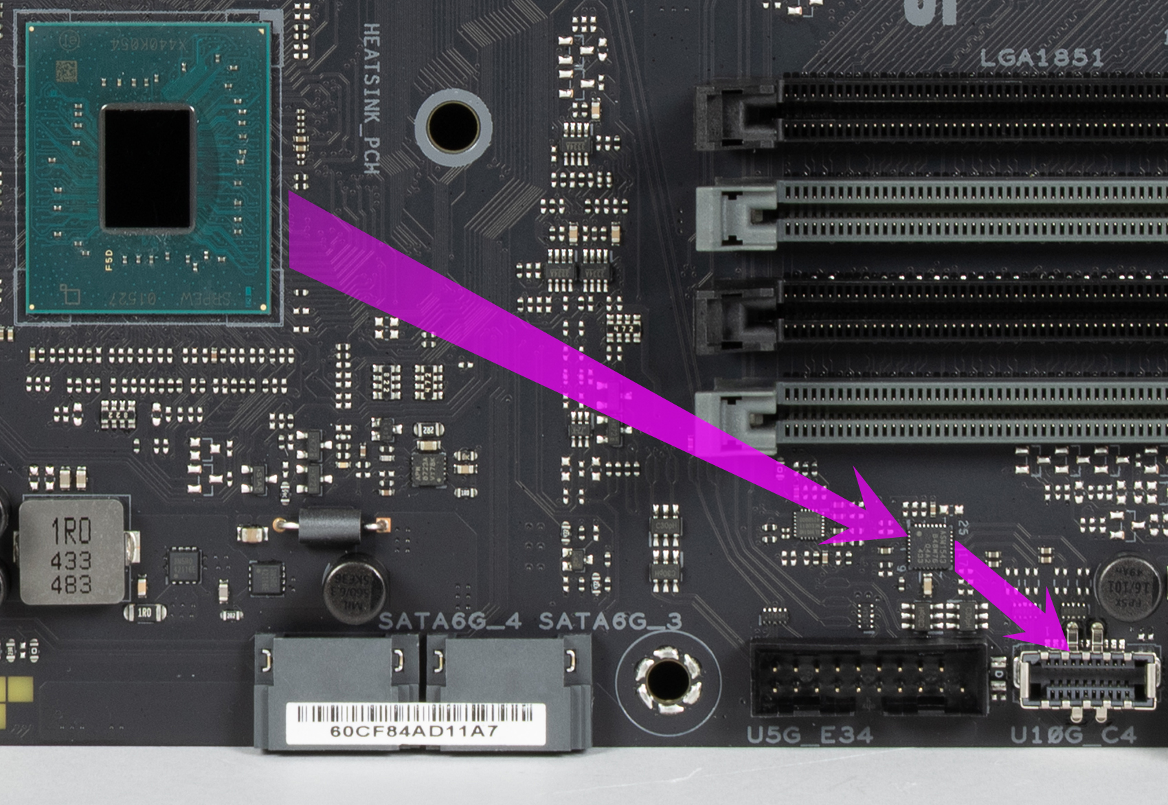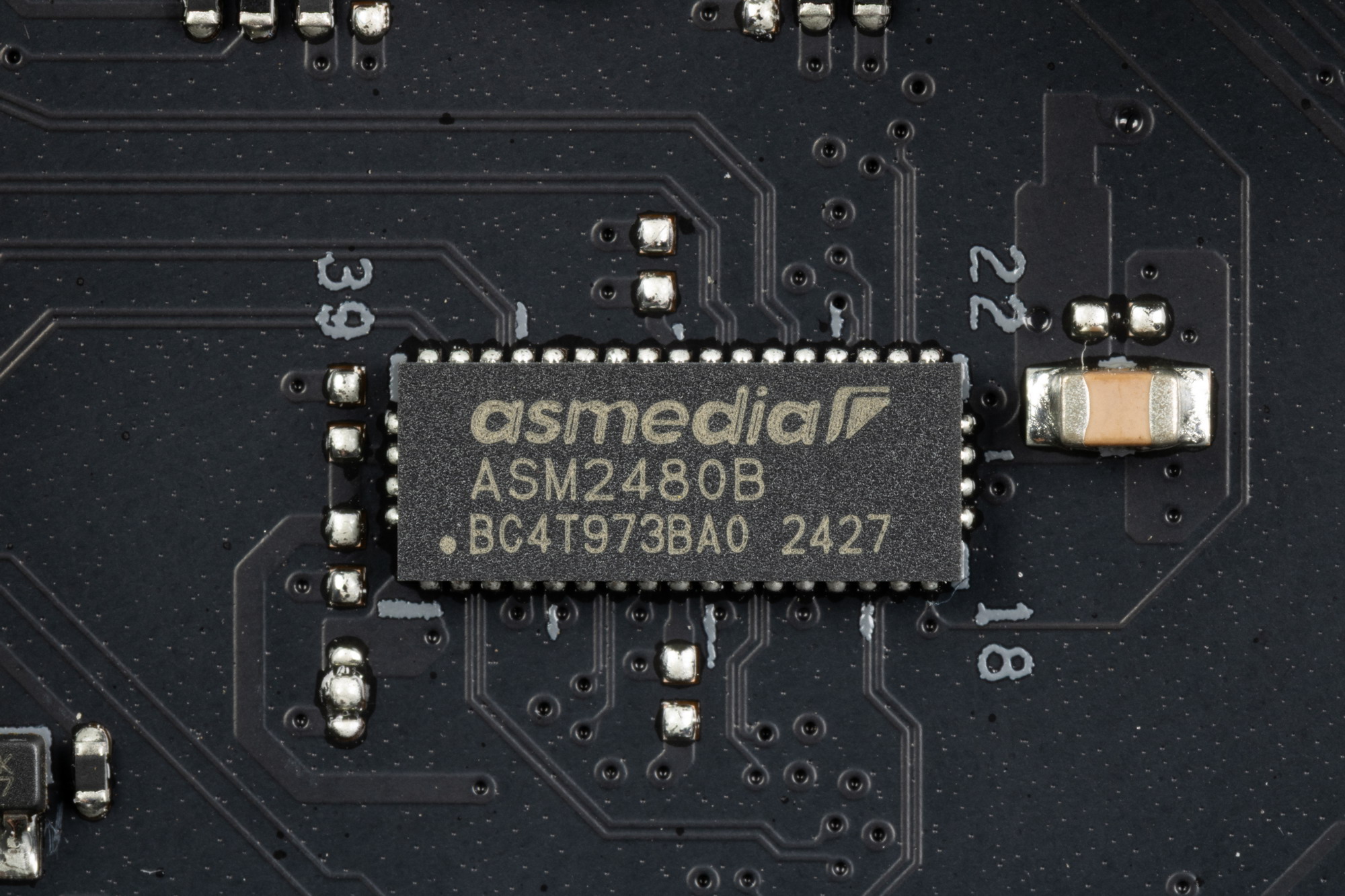 Как видим, перераспределение линий PCIe 4.0 на этой материнке имеется, поэтому задействован мультиплексор от ASMedia.