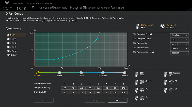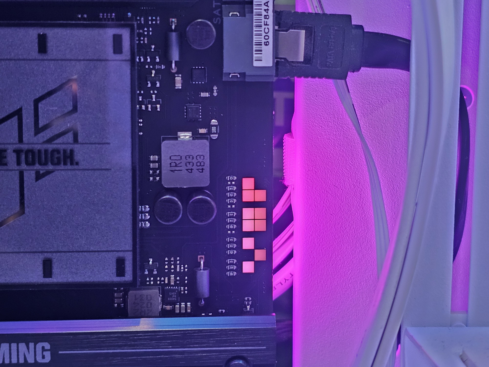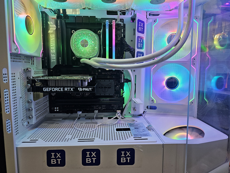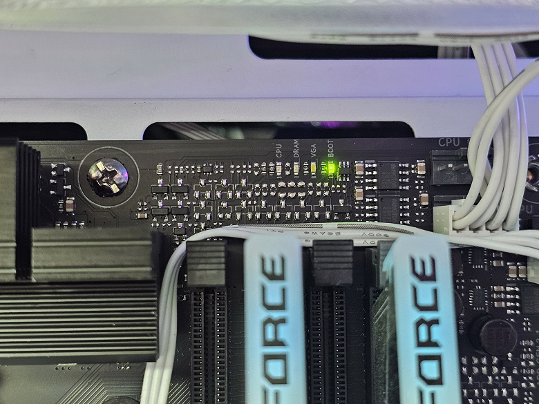 В арсенале платы также есть 4 порта SATA и 7 разъемов для вентиляторов. Система питания процессора хорошая, способная обеспечить работу даже топовых процессоров с разблокированным множителем с приличным запасом на разгон. Плата имеет приличную систему охлаждения, все слоты M.2 имеют радиаторы. Сетевые возможности включают проводной контроллер 2,5 Гбит/с и беспроводной Wi-Fi 7 + Bluetooth 5.4. В числе плюсов платы можно упомянуть возможности для подключения дополнительных ARGB-устройств.