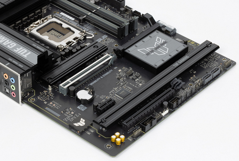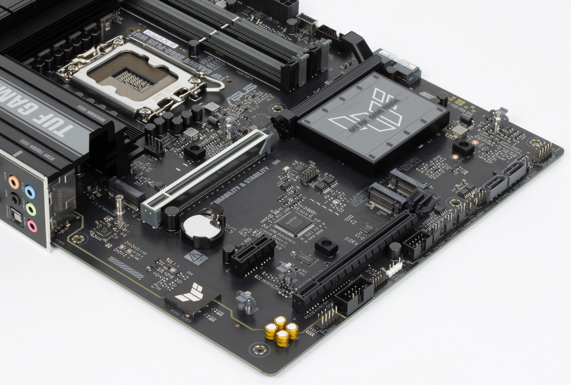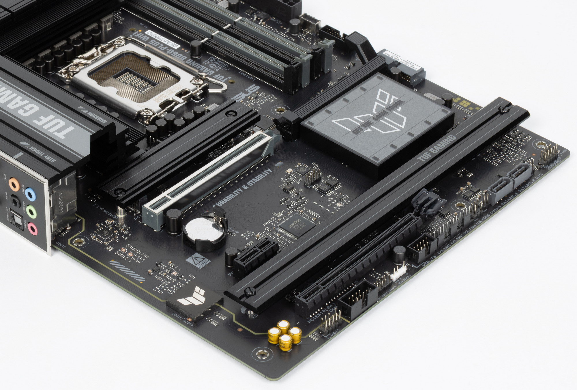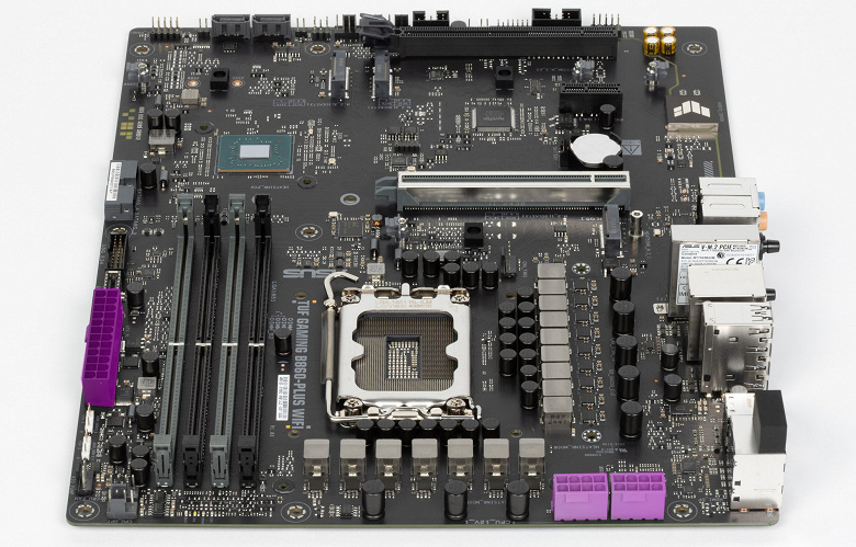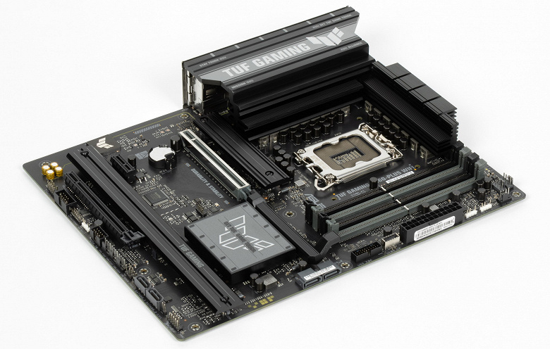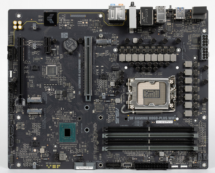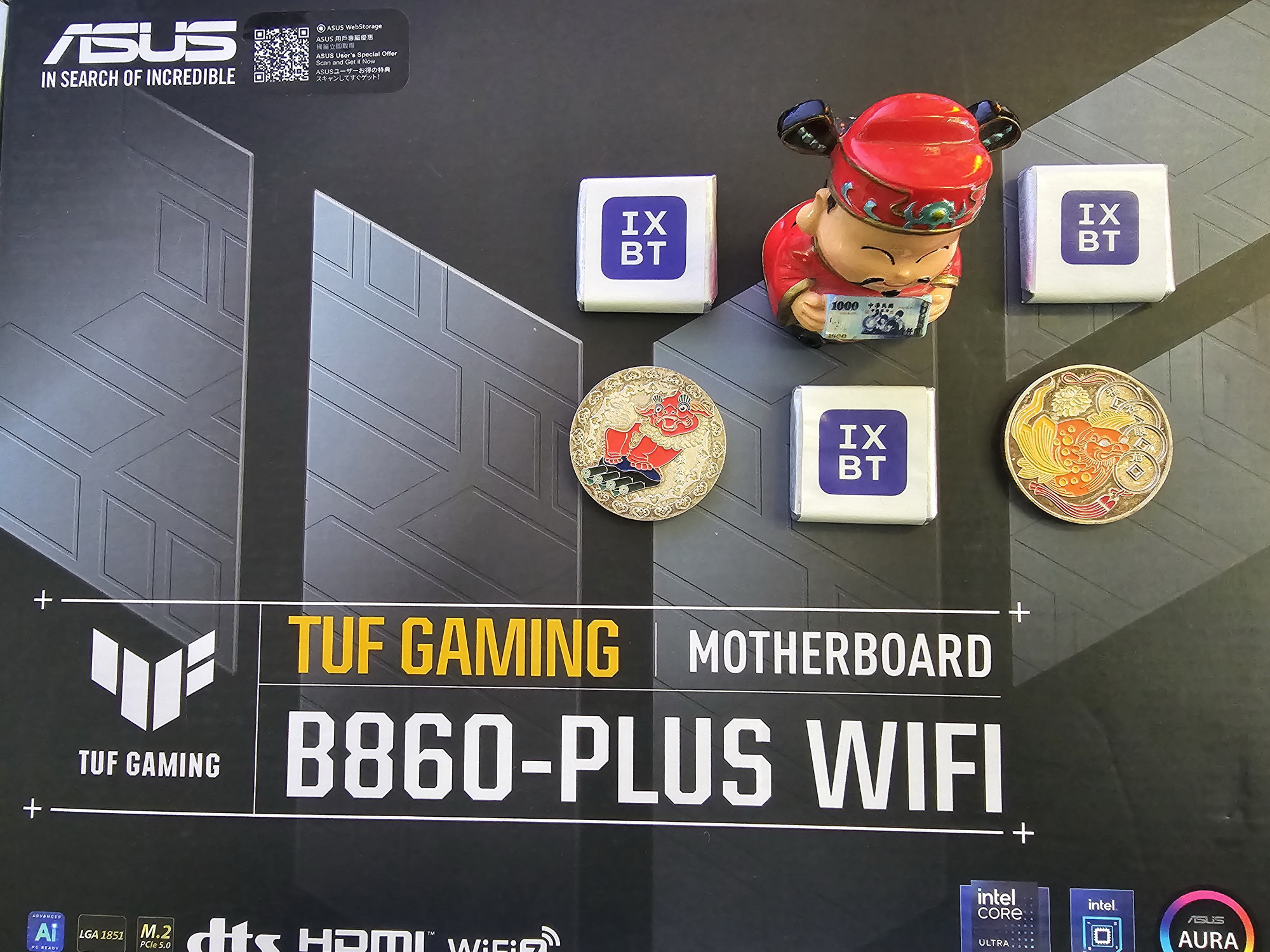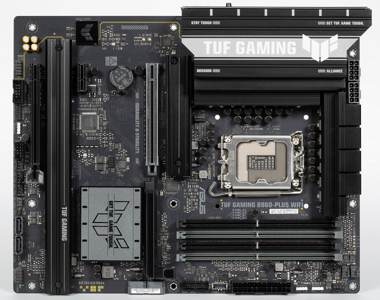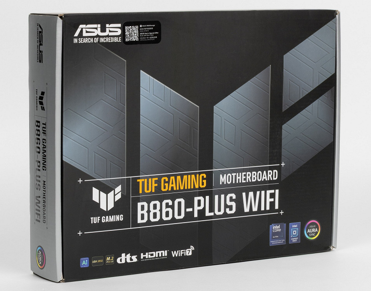 Собственно, переходим к объекту сегодняшнего исследования: материнская плата Asus TUF Gaming B860-Plus WiFi. Эта матплата принадлежит к среднебюджетной игровой серии TUF Gaming.