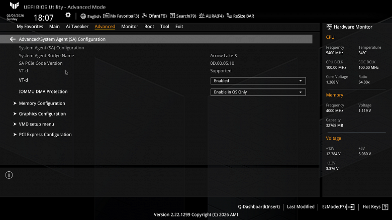 Плата поддерживает небуферизованную память DDR5 (non-EСС), а максимальный объем памяти составляет 256 ГБ. Могут использоваться модули CUDIMM.