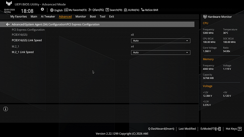Теперь посмотрим выше на то, как работают процессоры в данной конфигурации. У CPU Core Ultra 2xx на матплатах на базе B860 всего задействовано 20 линий PCIe, из них 4 линии версии PCIe 5.0 отведены на порт М.2_1. Оставшиеся 16 линий PCIe 5.0 идут на слот PCIe x16_1 (PCIe x16_1). Так что вариантов переключения линий PCIe 5.0 между слотами нет.