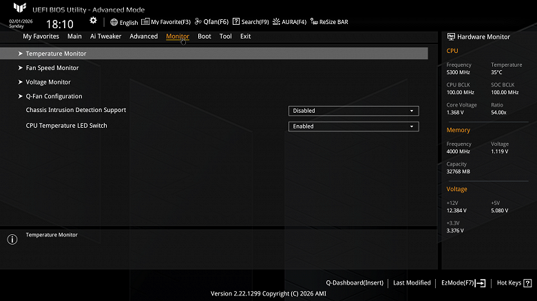 | Прочие внутренние элементы | 24-контактный разъем питания ATX 2 8-контактный разъем питания EPS12V 1 слот M.2 (E-key), занят адаптером беспроводных сетей 1 разъем для подключения порта USB 3.2 Gen2 Type-C 1 разъем для подключения 2 портов USB 3.2 Gen1 1 разъем для подключения 2 портов USB 2.0 7 разъемов для подключения 4-контактных вентиляторов и помп ЖСО 3 разъема для подключения адресуемой ARGB-ленты 1 разъем аудио для передней панели корпуса 1 переключатель сброса CMOS 1 разъем для подключение дискретных карт Thunderbolt4 1 разъем COM-порт 1 разъем для подключения управления с передней панели корпуса |