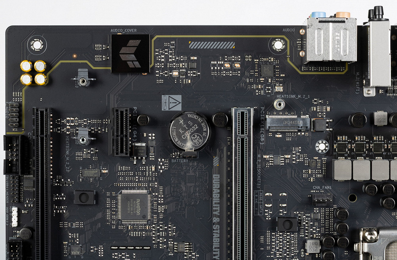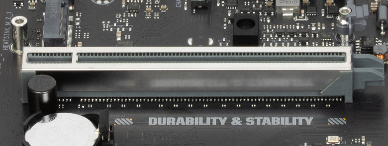 Слот PCIe x16_1 имеет металлическое армирование: защиту из нержавеющей стали. Все это увеличивает надежность. Кроме того, такая защита предохраняет слот от электромагнитных помех.