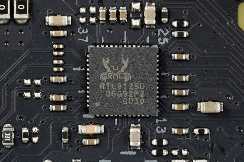 Материнская плата оснащена средствами связи хорошо. Имеется скоростной Ethernet-контроллер Realtek RTL8125D, способный работать по стандарту 2,5 Гбит/с.