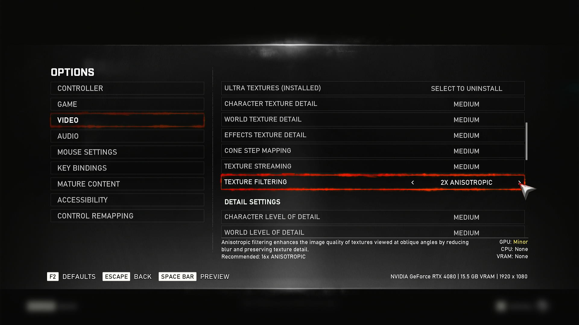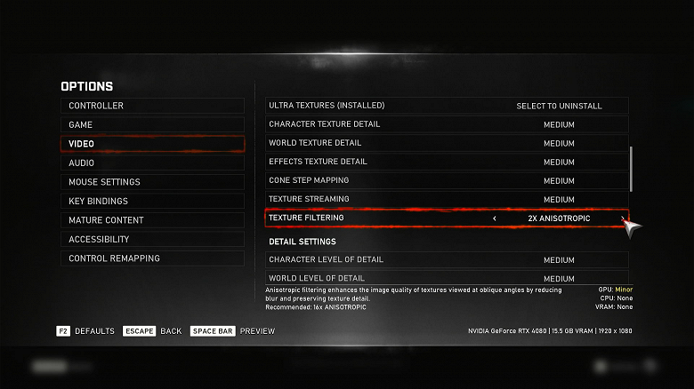 Texture Filtering: 2× Anisotropic. Нажимаем Esc для возврата.