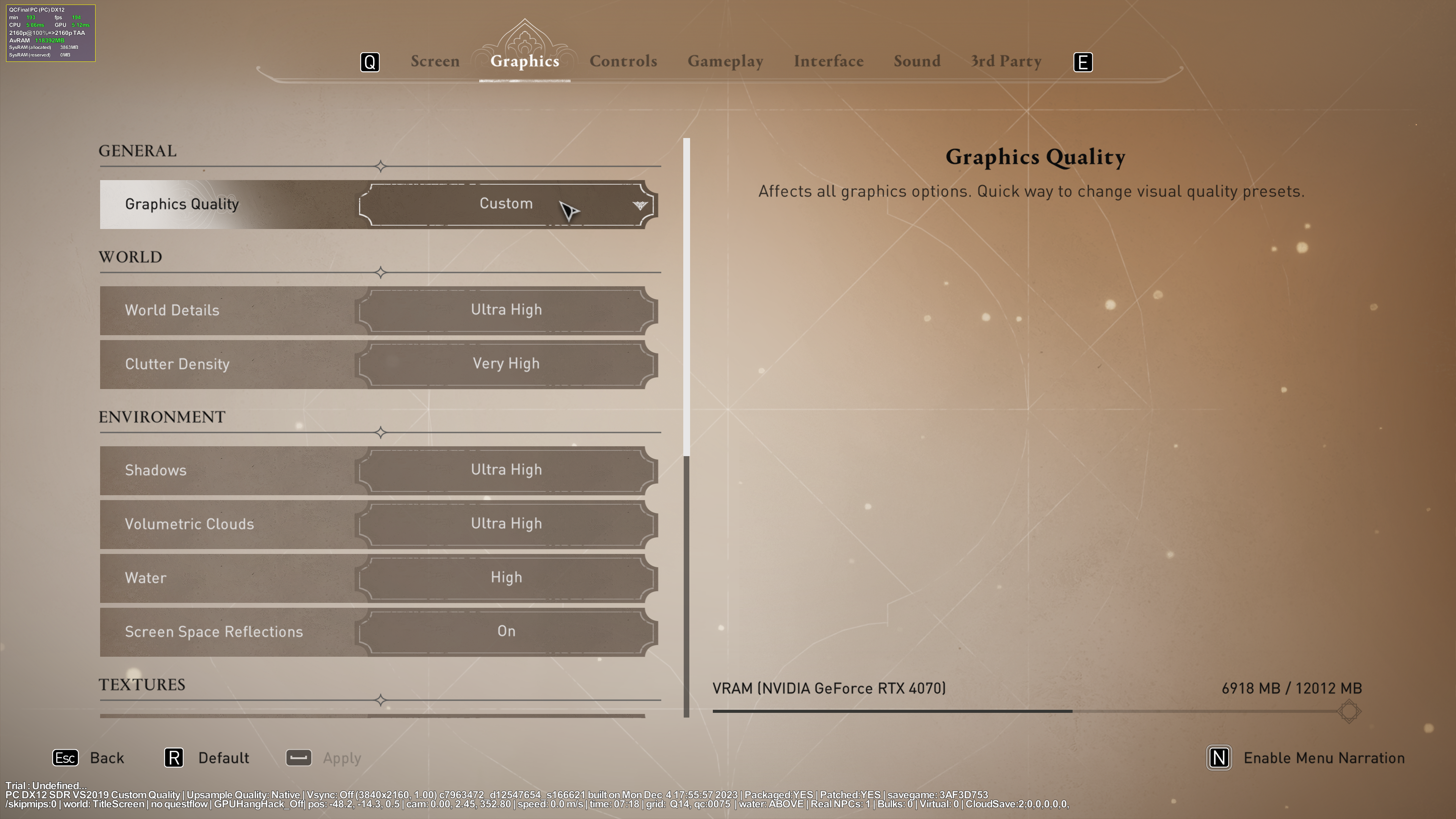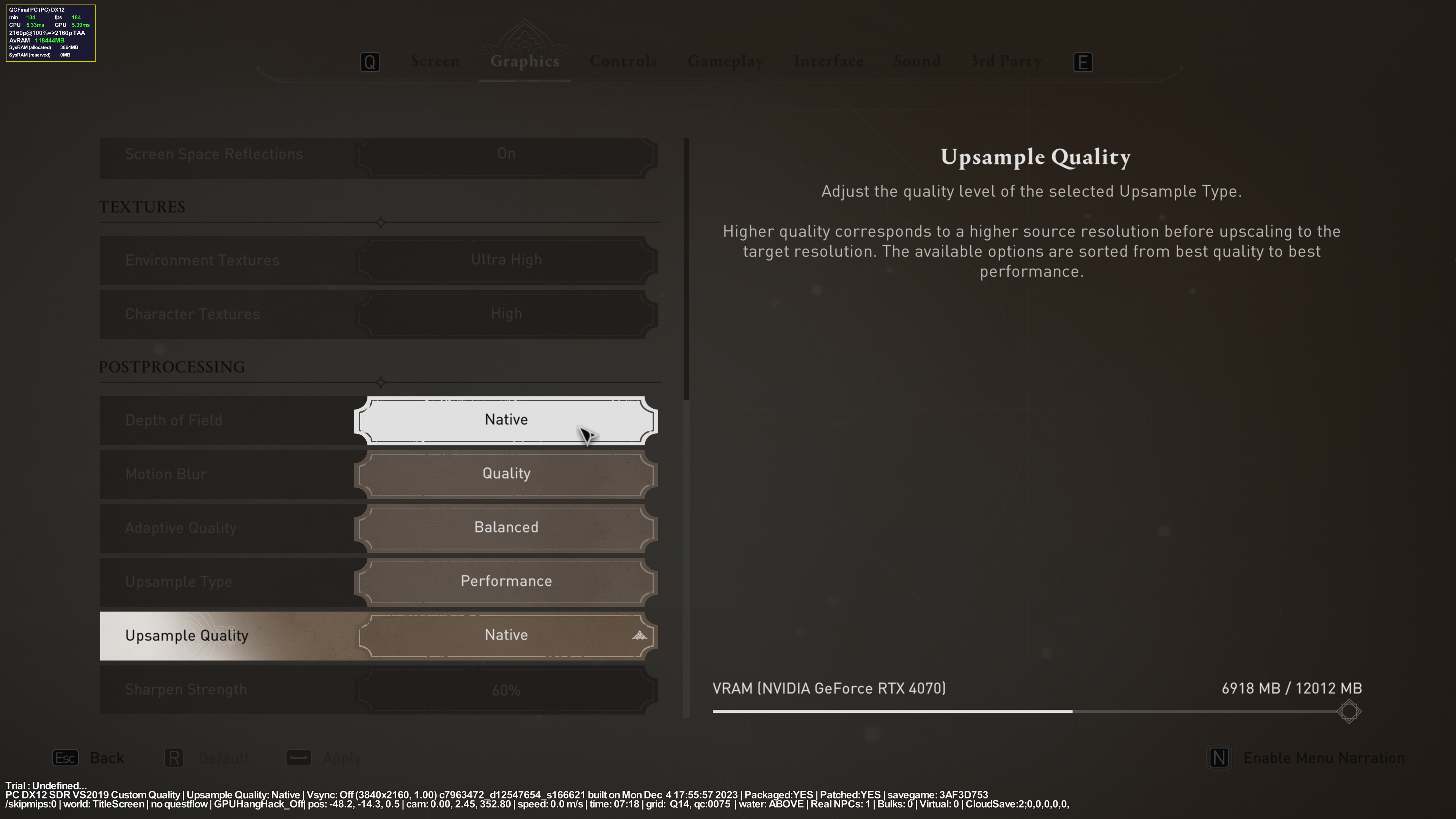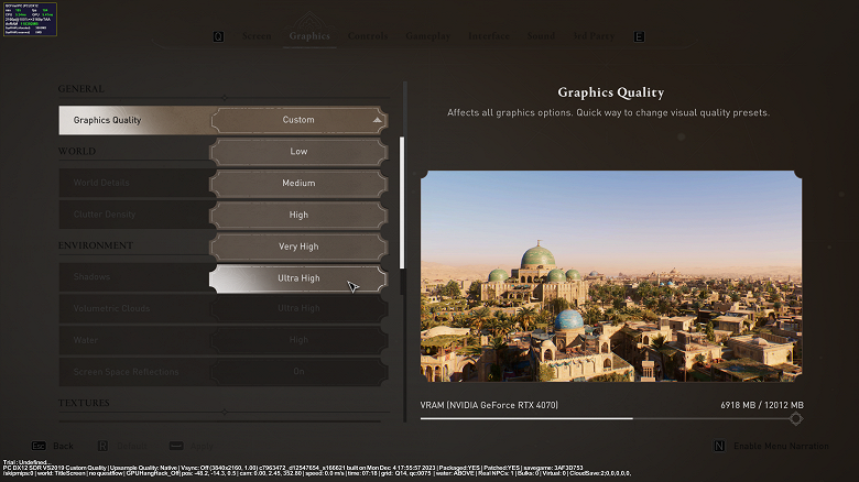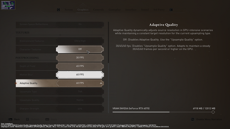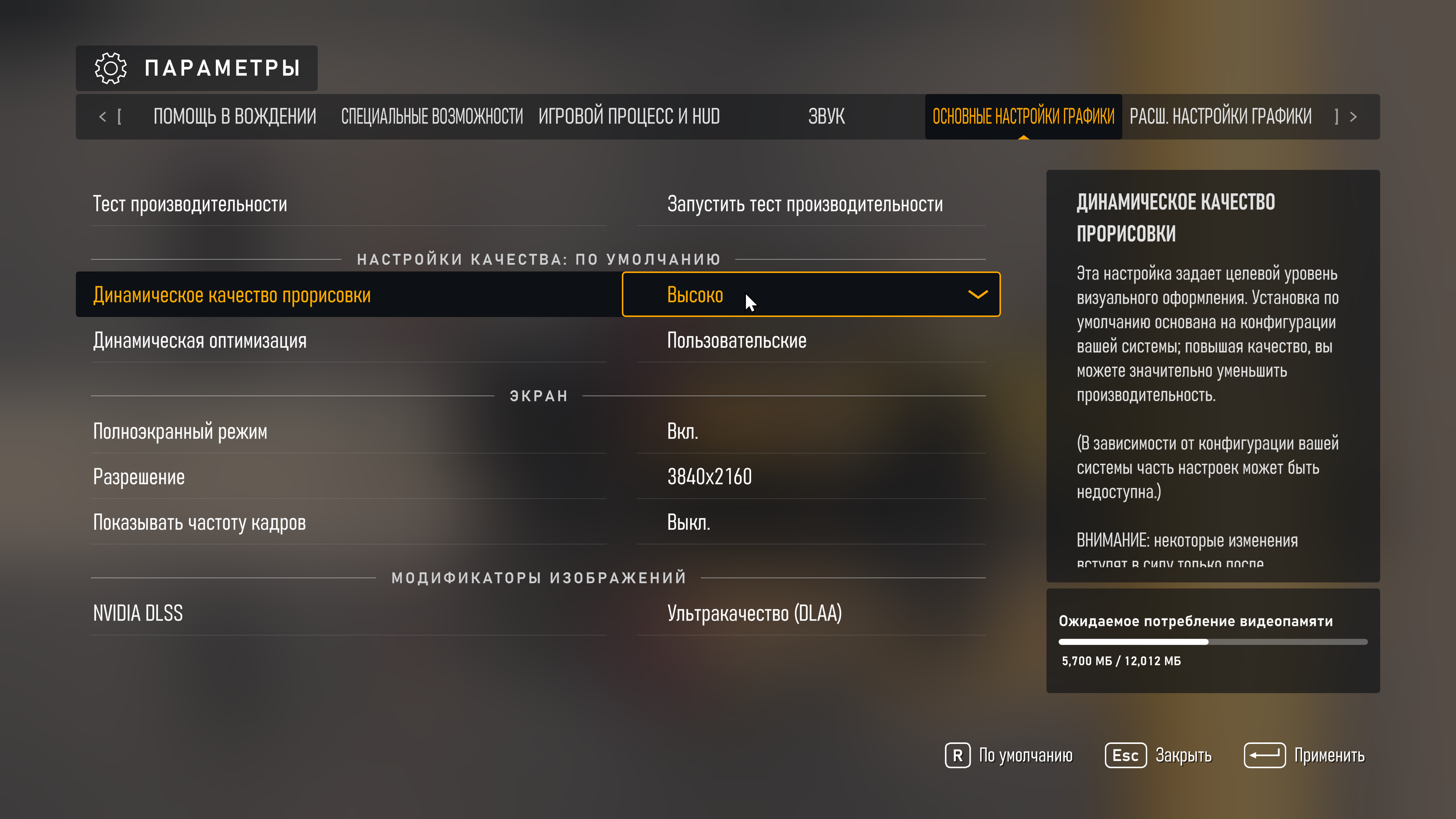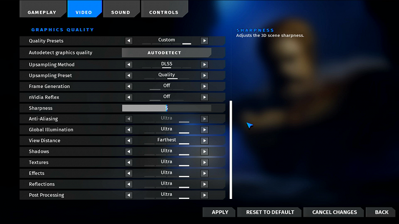 Параметры качества изображения не изменяем. Они должны оставаться такими же, как при тестировании без RT и DLSS.