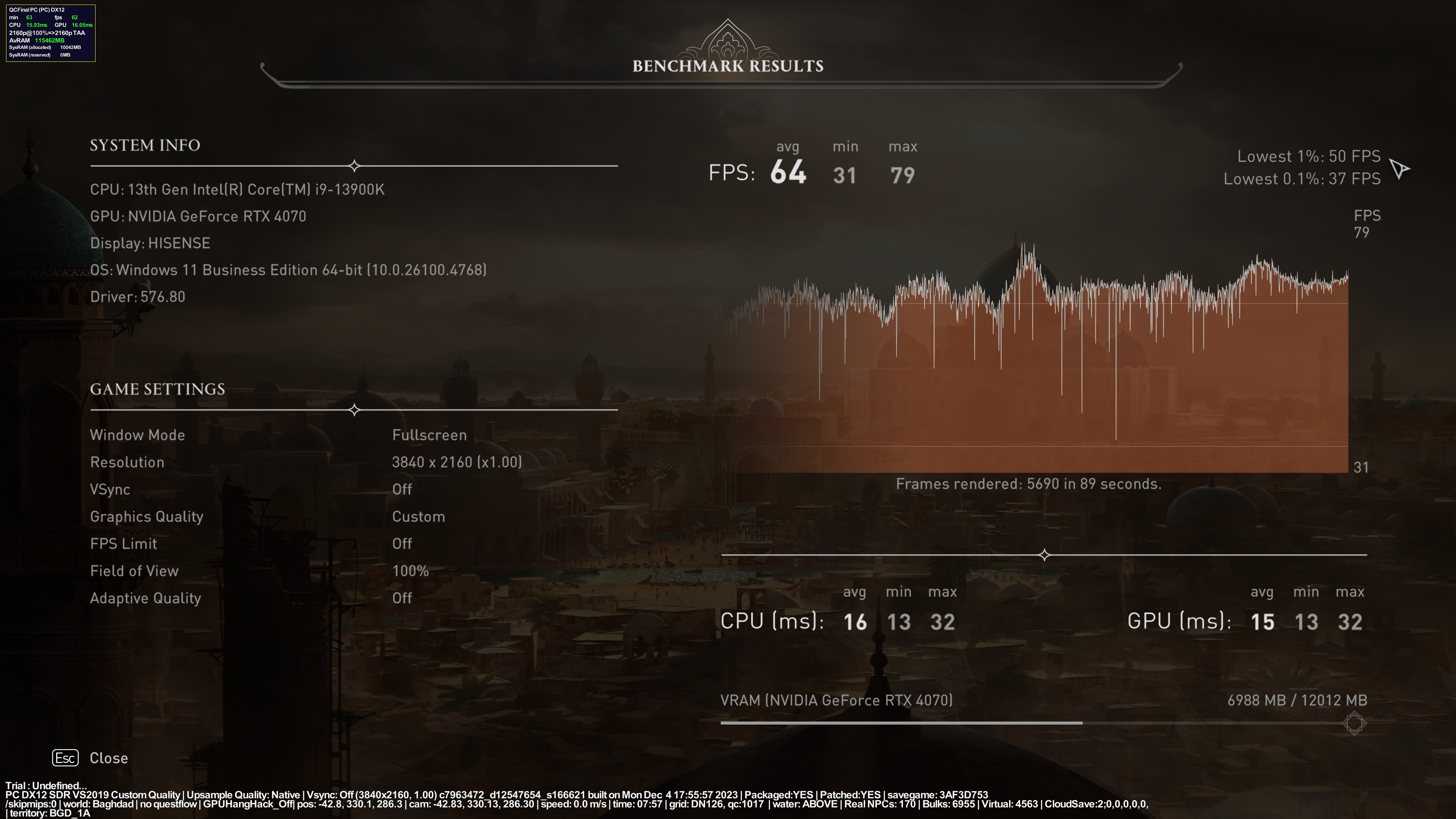 - средний fps = 64