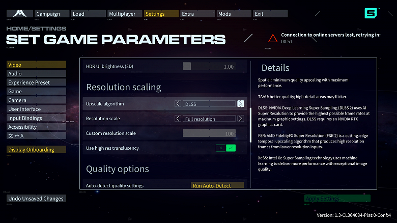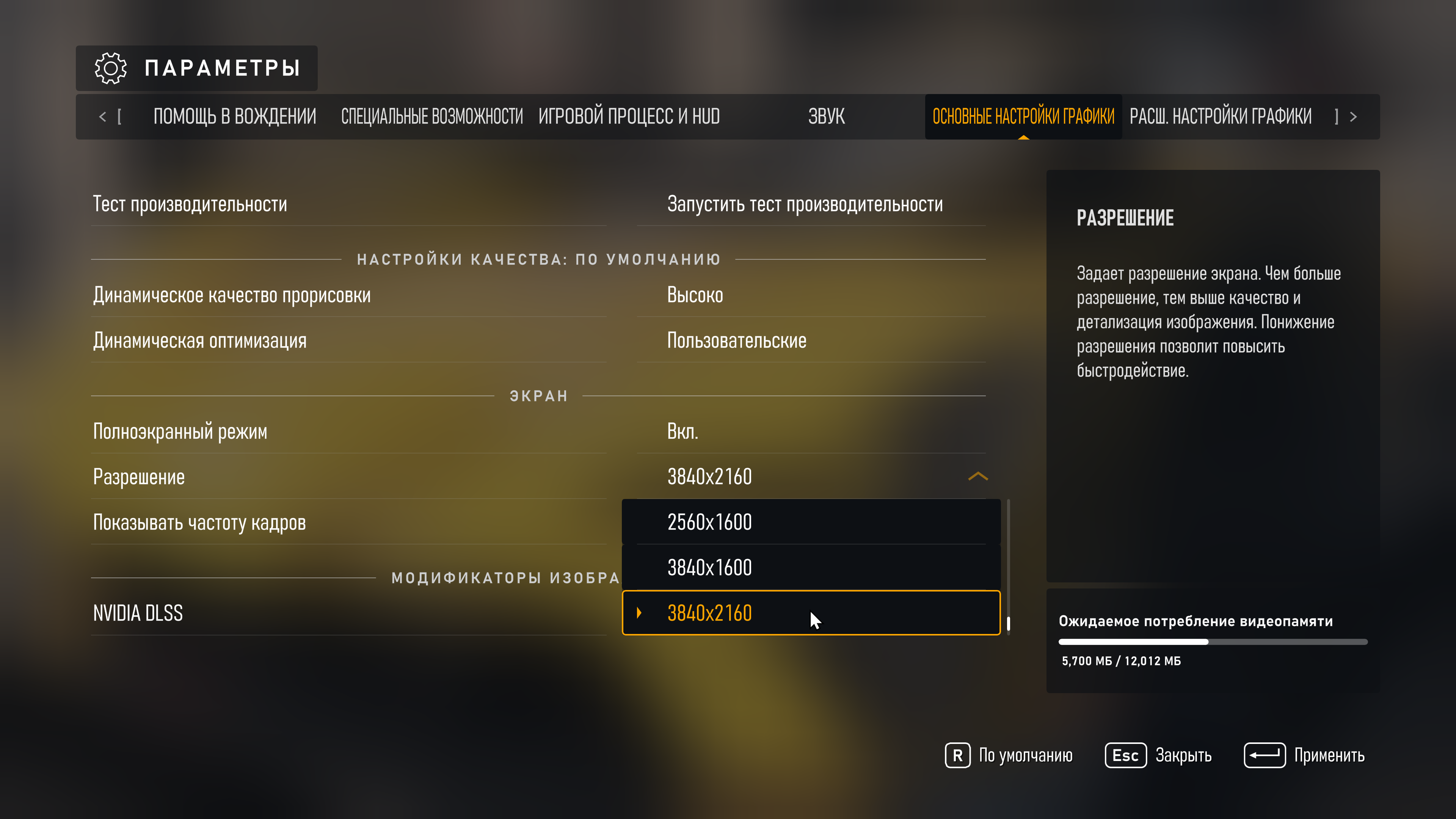 Для «Быстрой настройки качества» устанавливаем пресет «Ультра». В поле «Масштаб разрешения» проверяем установку «Суперразрешение DLSS», если оно не будет установлено выбором пресета. Для «Суперразрешение DLSS» пресет выбирает значение «Автоматическое», и его менять не нужно, потому что это сбросит другие показатели.