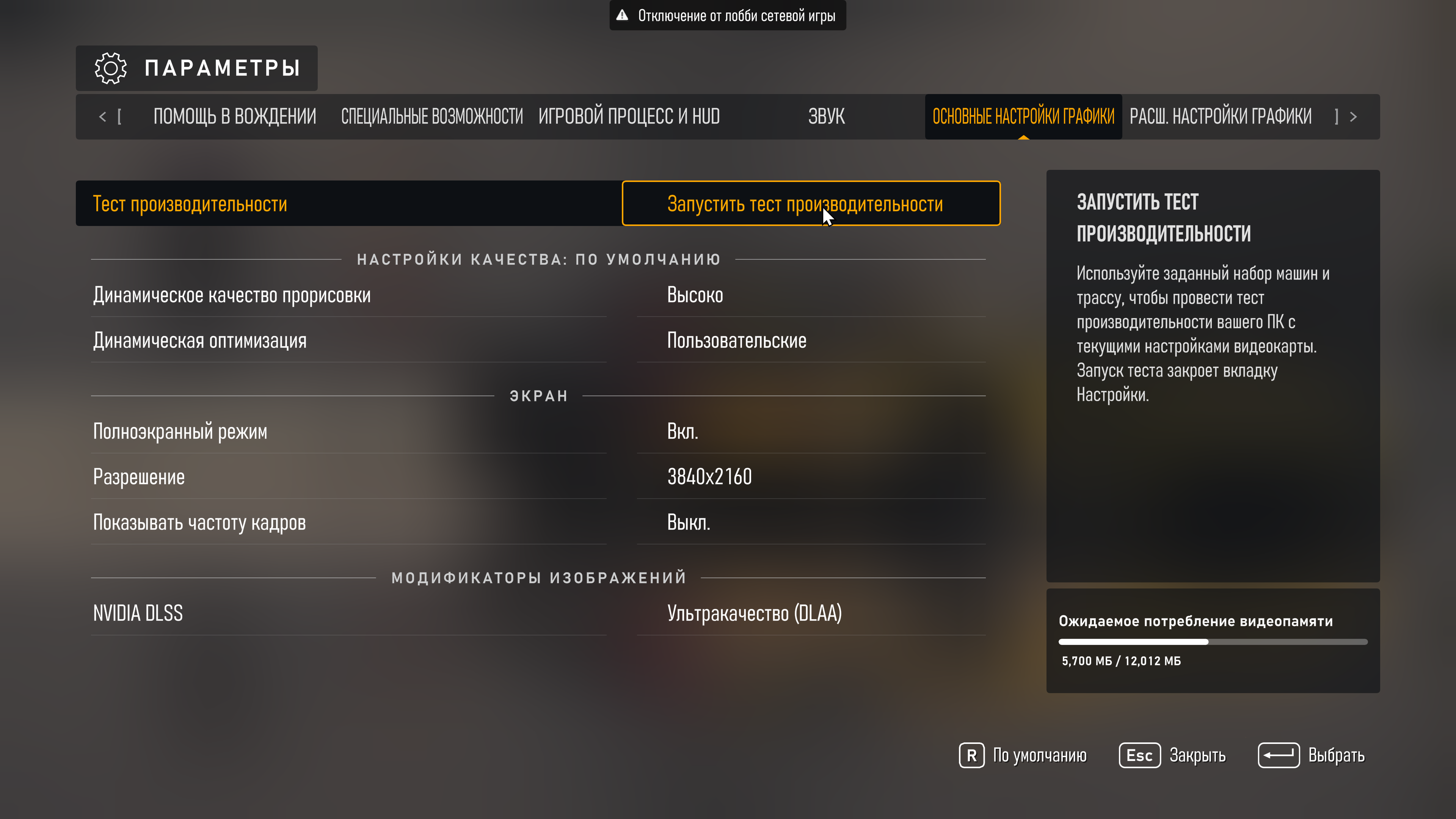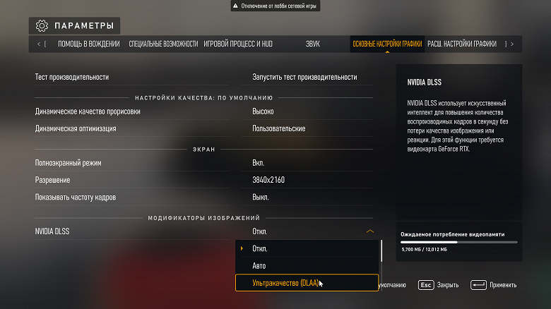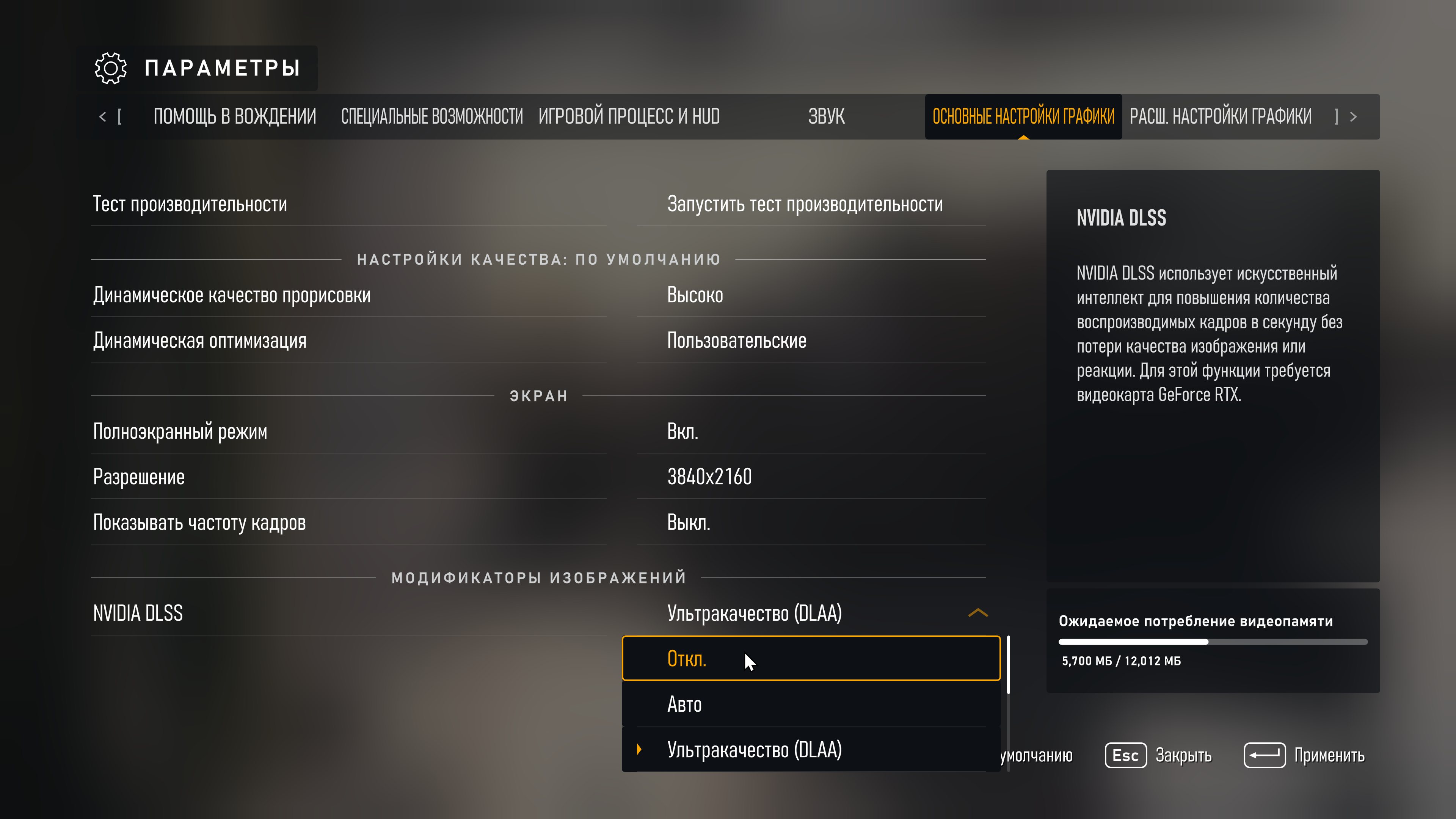 - Создание кадров DLSS — Выключено