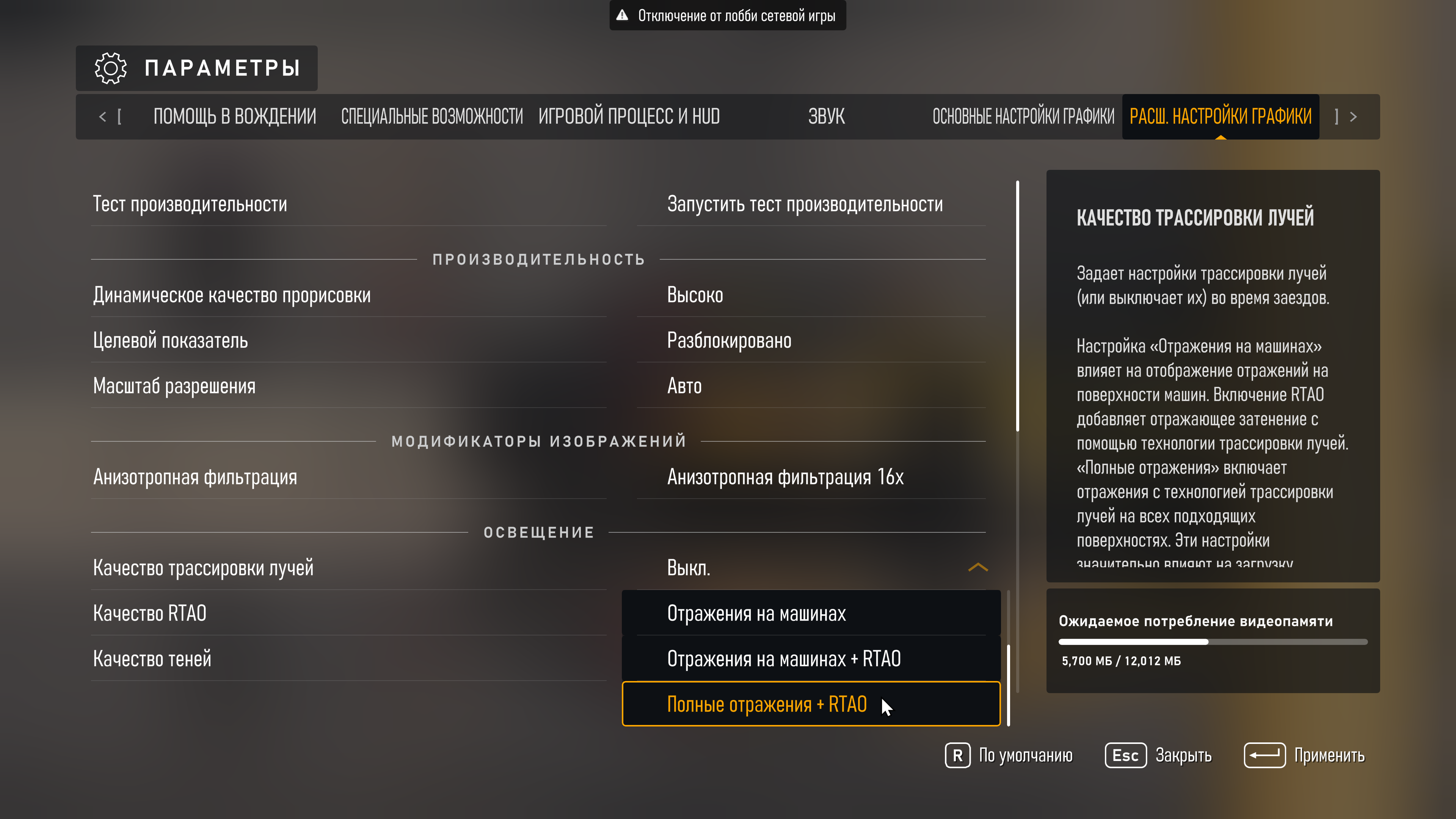 - Трассировка лучей — Выключено