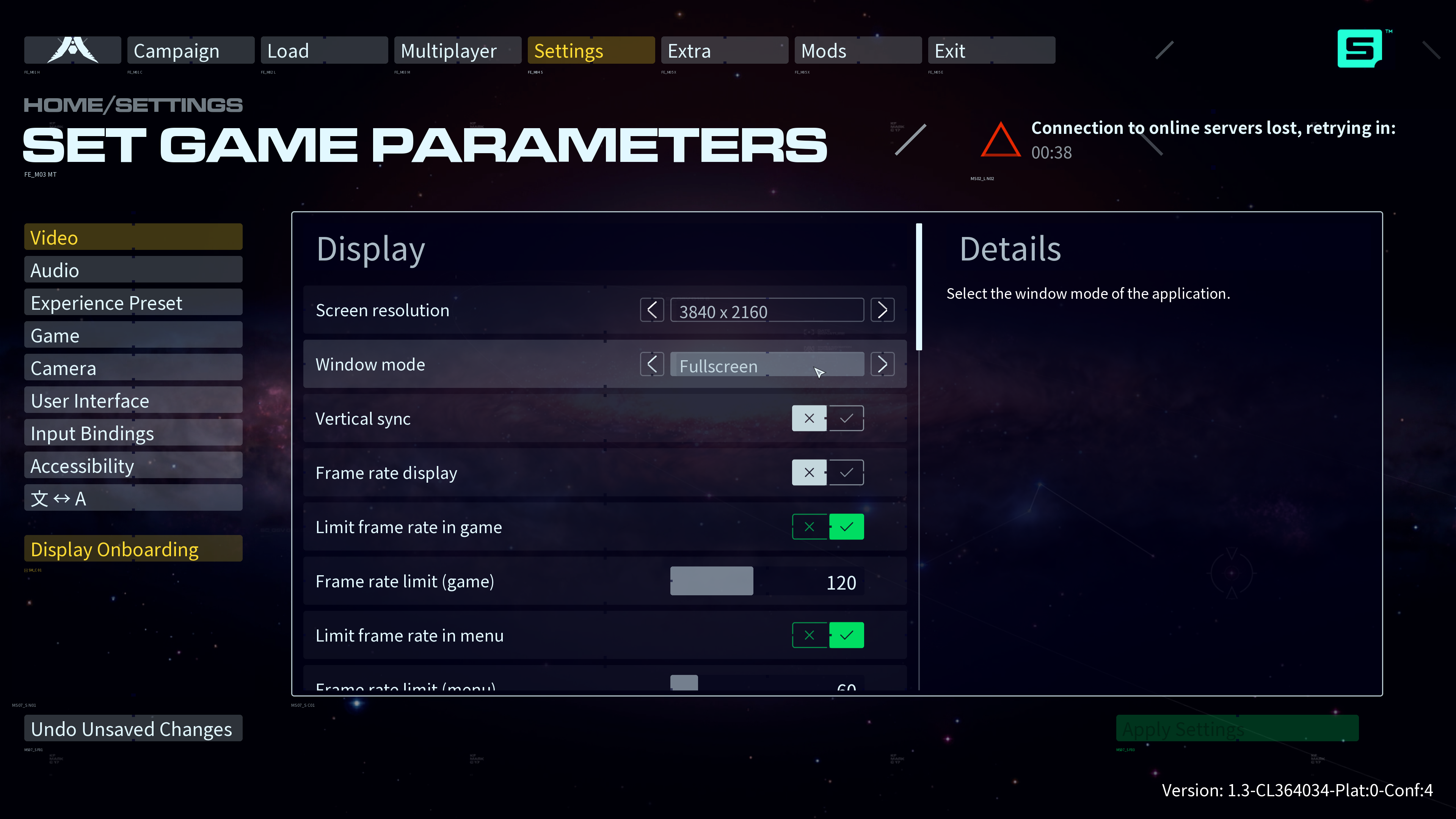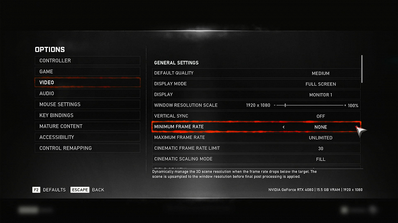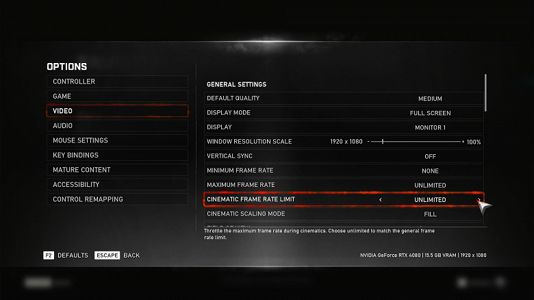 Cinematiс Framerate Limit: Off.