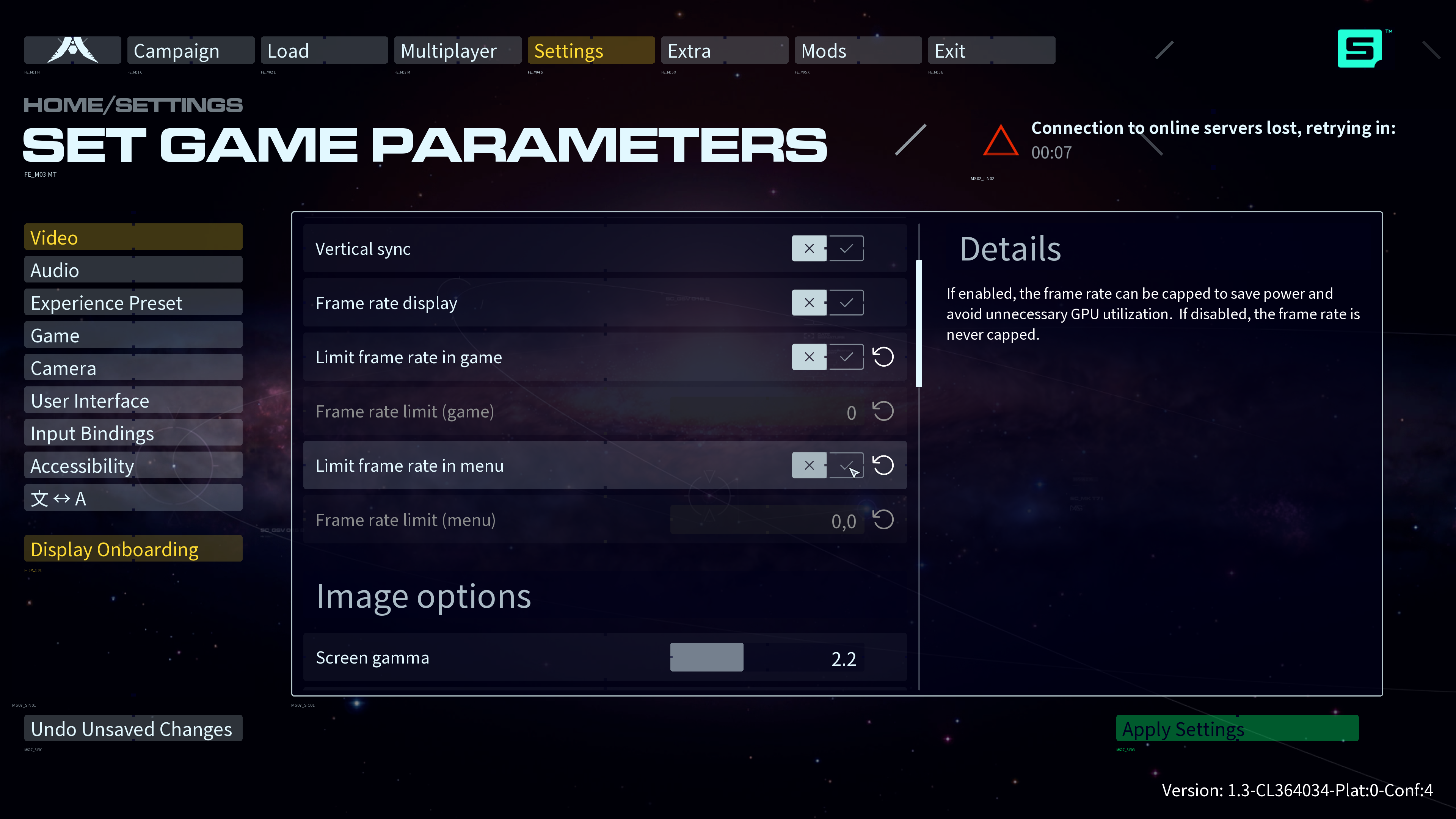 Minimum Framerate: None, Maximum Framerate: Unlimited.