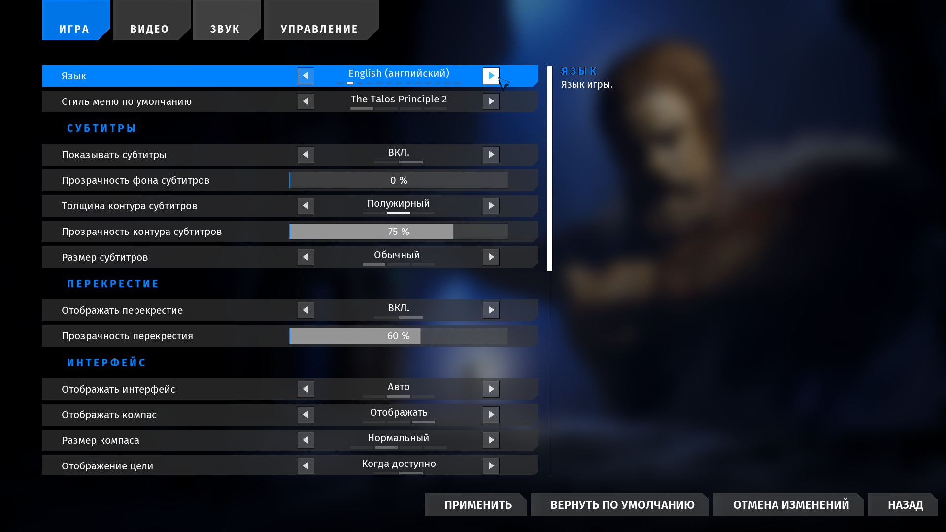 Доступ к настройкам содержится в опциях главного меню.