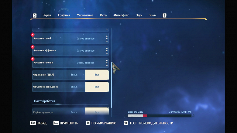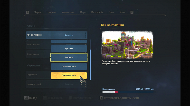 Основные настройки сосредоточены в разделе «Графика».