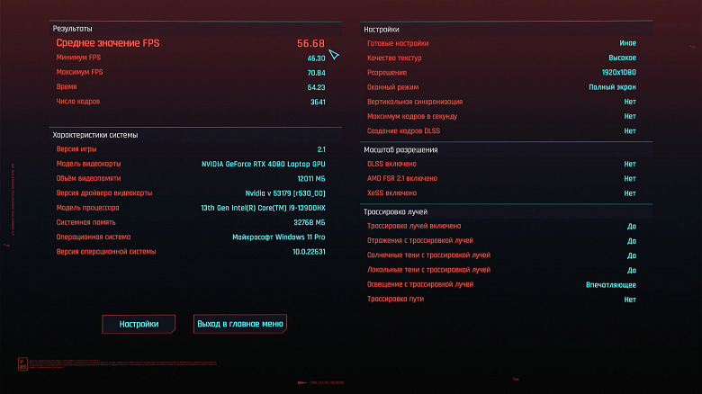 Это позволит оценить вклад в нагрузку на ресурсы трассировки лучей и возрастание fps за счет использования DLSS.