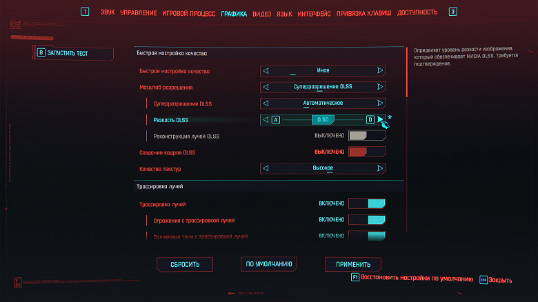 Резкость DLSS устанавливаем вручную на «0,50».
