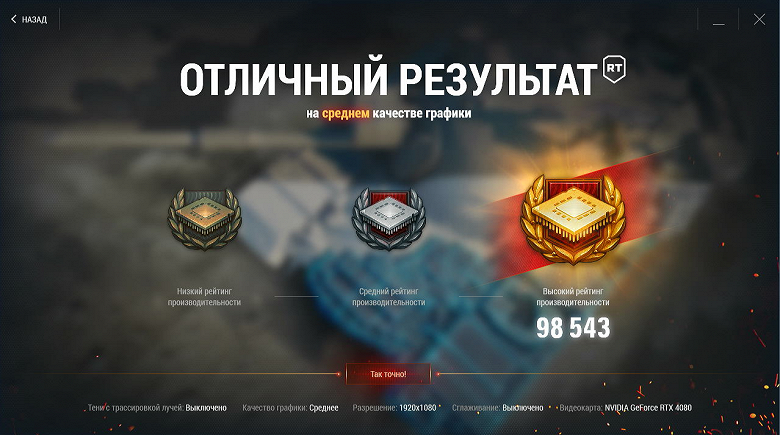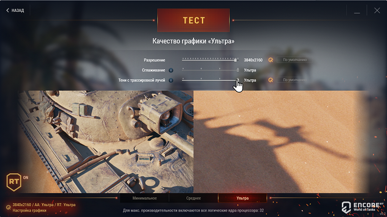 Несмотря на то, что трассировка в игре выполняется не «вложенными» функциями видеокарты, а программно, мы используем этот режим как историческое наследие ранее проводившихся испытаний.