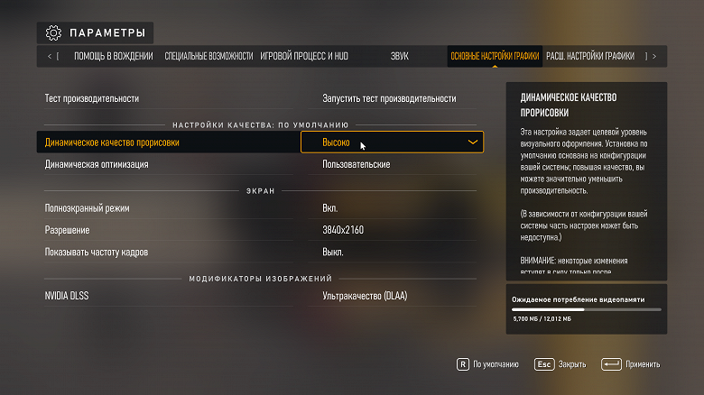 - Качество текстур — Высокое