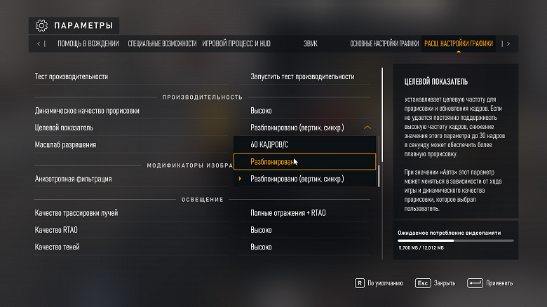 - Максимум кадров в секунду — Выключено