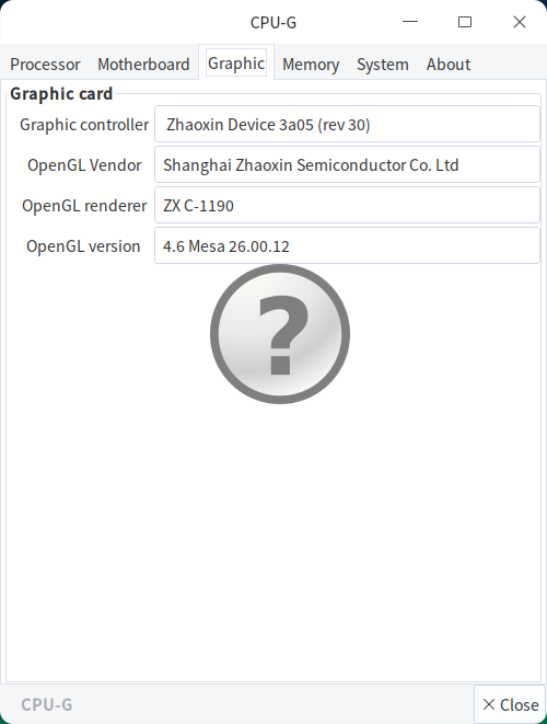 В целом, можно утверждать, что система вполне работоспособна, и с некоторыми дополнительными телодвижениями в виде установки драйвера и подбора ПО она обеспечит достаточный комфорт для нетребовательных пользователей при использовании несложных программных продуктов, не слишком больших документов и не слишком активной работе фоновых задач, занимающих большие объемы памяти. Желательно также работать в разрешении Full HD, ну уж по крайней мере не в 4K. Таким системам большее и не нужно, они рассчитаны как раз на подобные нагрузки небольшой интенсивности. Осталось посмотреть, какие основные данные о процессоре Zhaoxin и его видеоядре дают распространенные системные утилиты в UOS: